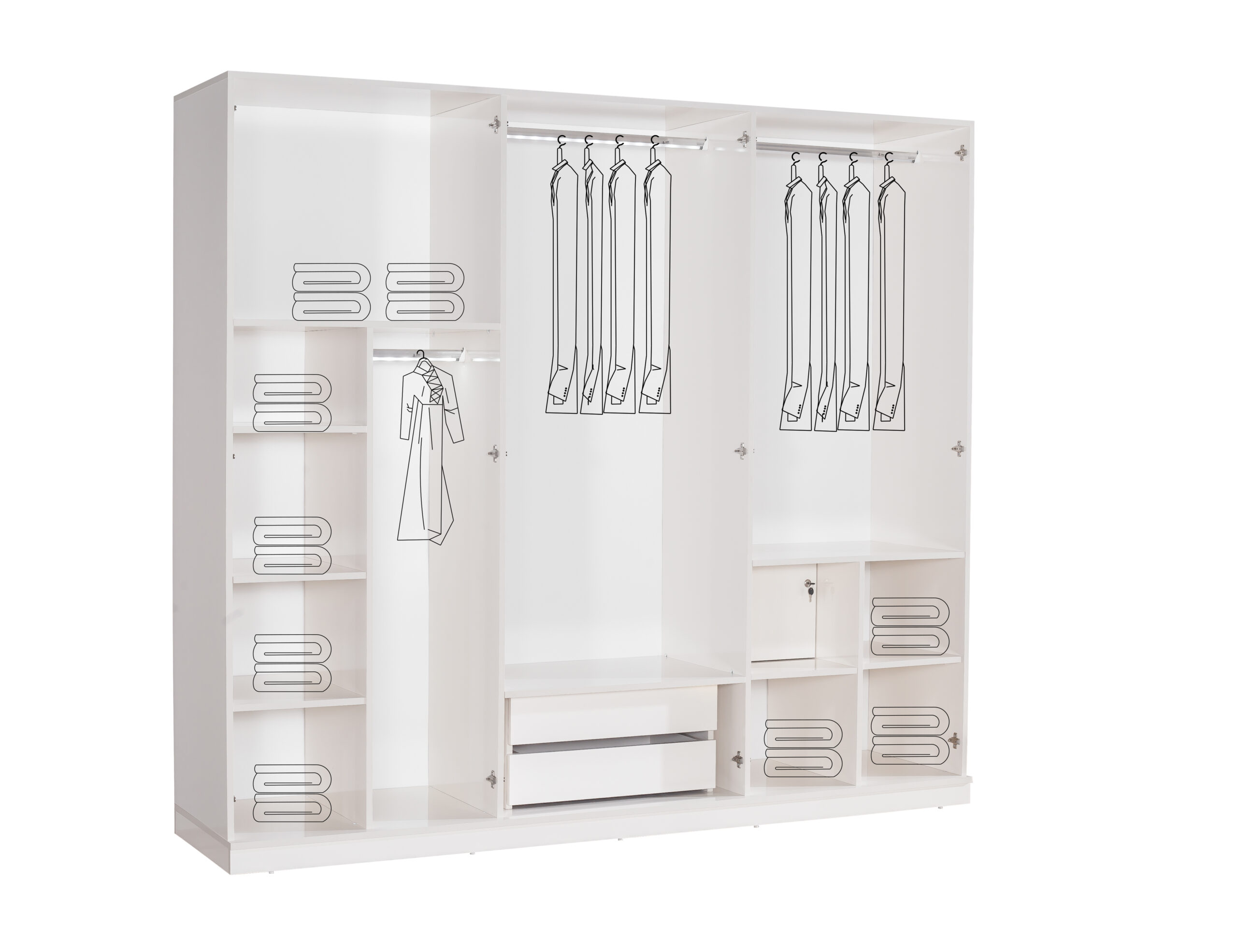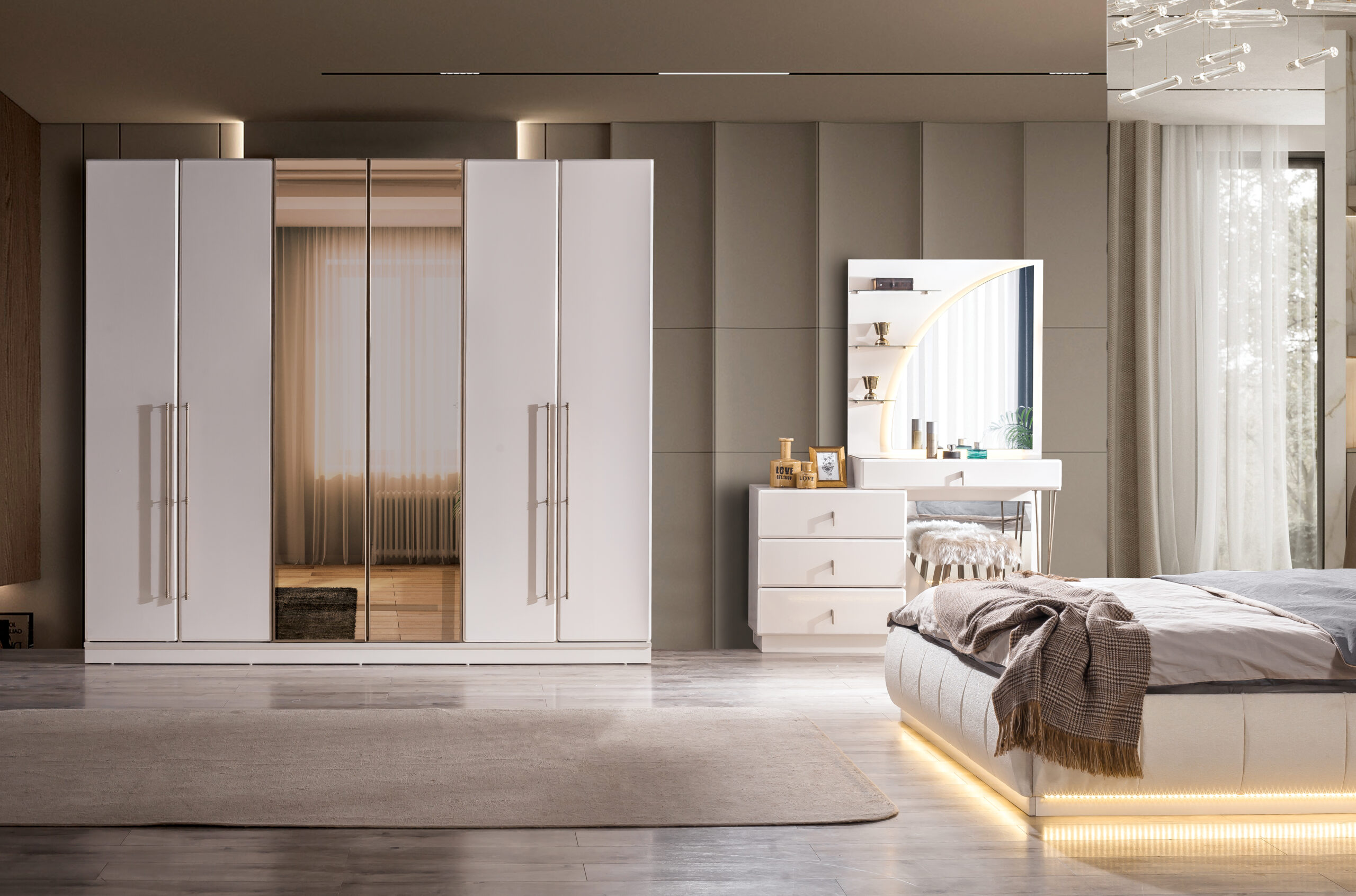 Geniş iç hacimli gardırop ve akıllı depolama çözümleri